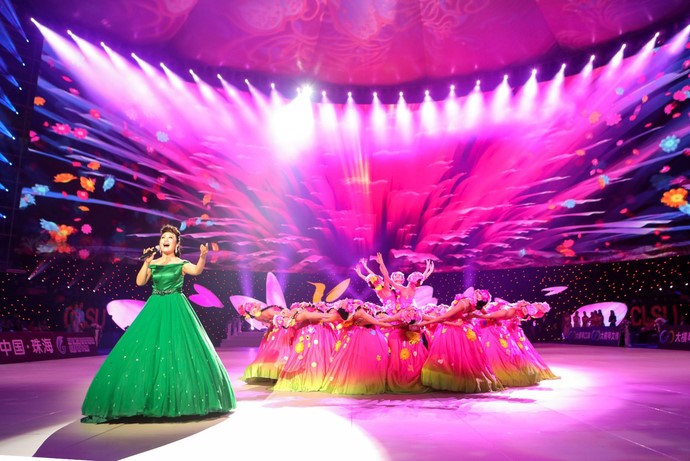 開幕式文藝表演部分的開場(chǎng)舞《青春綻放》,以極具年輕氣息和熱情動(dòng)感的音樂開場(chǎng),營(yíng)造出活力四射和宏大氣勢(shì);隨后,來(lái)自中國(guó)雜技團(tuán)的《空竹》表演,也讓觀眾深深感受到中國(guó)雜技的無(wú)窮魅力;歌舞《百花齊放》、《我心永恒》、《waka waka?來(lái)跳舞》等節(jié)目也贏得滿堂喝彩;《珠海我愛你》以本屆賽事國(guó)內(nèi)外青少年選手代表近60人的表演陣容,極富創(chuàng)意地將標(biāo)準(zhǔn)舞中的恰恰元素觸入其中,譜寫了中拉友誼的華彩;而壓軸歌曲《共筑中國(guó)夢(mèng)》則是由著名歌唱家張妮演唱,形象而巧妙地展現(xiàn)中國(guó)夢(mèng)的精髓,以及標(biāo)準(zhǔn)舞和拉丁舞的文化沉淀與獨(dú)有韻味。