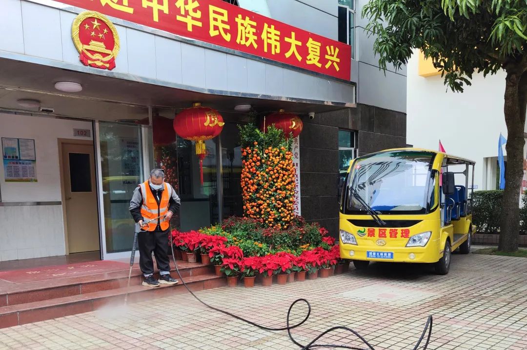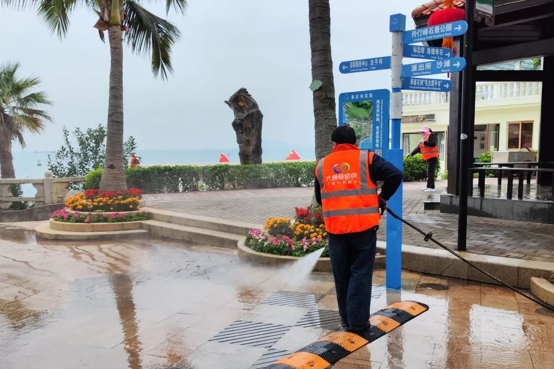 進(jìn)駐首周,大橫琴城資海島服務(wù)團(tuán)隊便迎來了春節(jié)長假的旺季保障任務(wù)。在時間緊、任務(wù)重的情況下,海島服務(wù)團(tuán)隊全體出動,積極配合擔(dān)桿鎮(zhèn)開展“除舊迎新專項行動”,按照“大清掃、大沖洗、大整治”作業(yè)模式,全面沖洗路面的污漬、青苔,清理垃圾、落葉、雜草等,助力營造干凈、整潔、有序的海島環(huán)境。