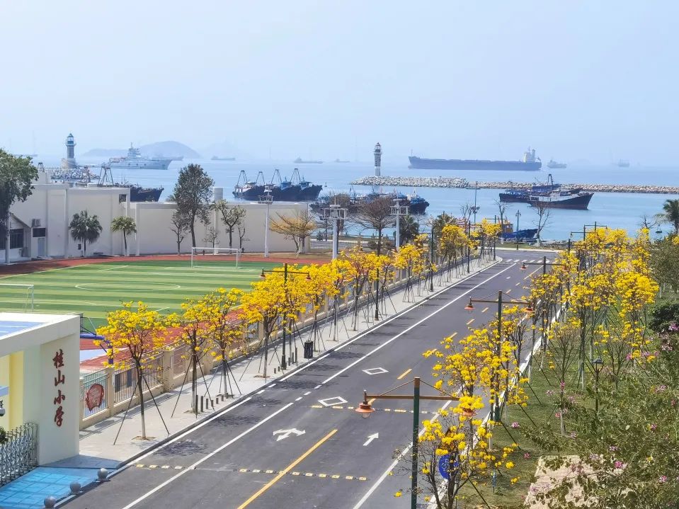 精細(xì)化養(yǎng)護(hù)海島上的一百多棵黃花風(fēng)鈴木,助力展現(xiàn)明媚動人、賞心悅目的景觀效果