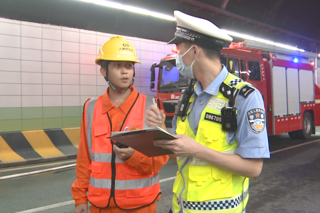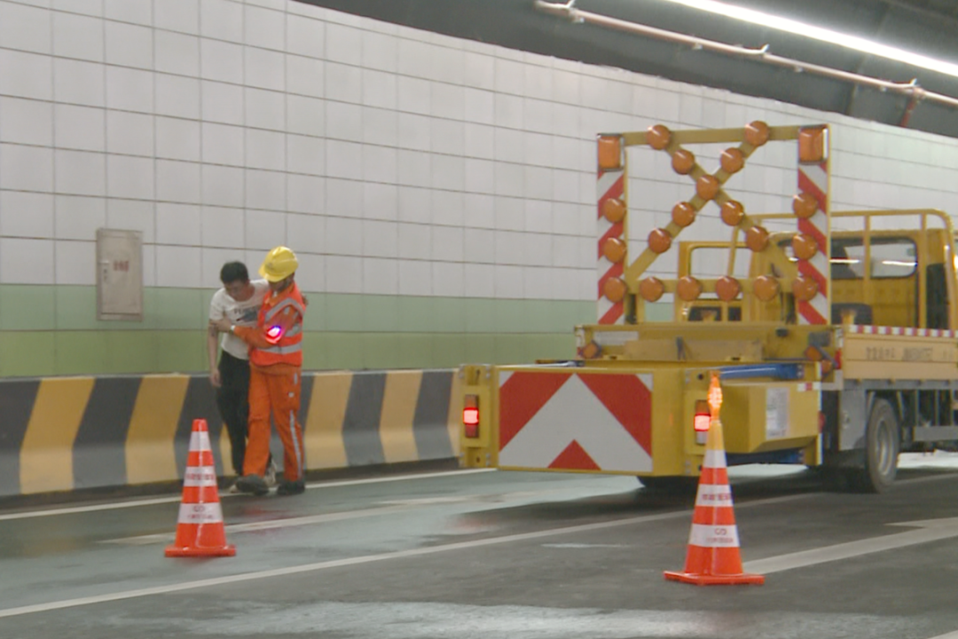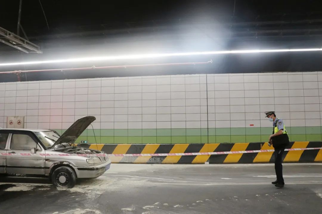 在發(fā)現(xiàn)車(chē)輛碰撞事故后,迅速在隧道口進(jìn)行圍蔽和疏導(dǎo);