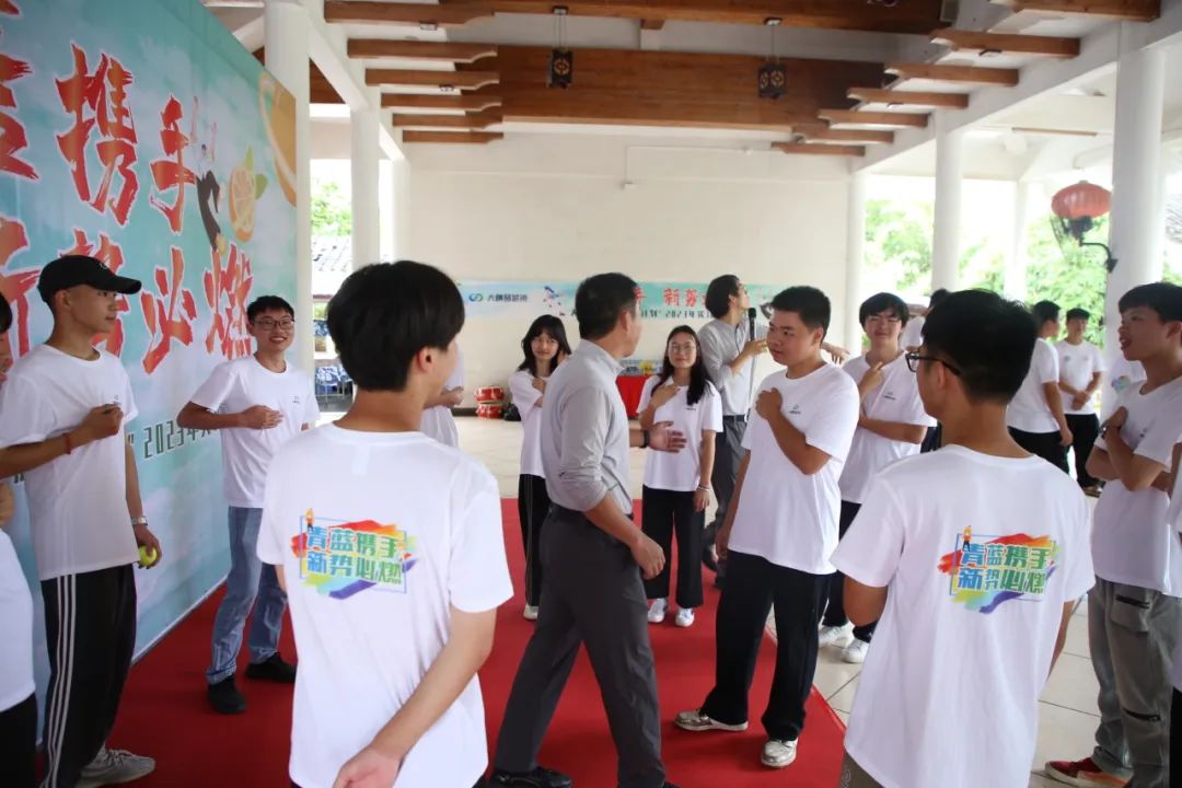 珠海市技師學院智能控制系主任游洲及智能控制系畢業(yè)實習主管老師萬晨也出席本次實習生拓展活動,關注實習生們現(xiàn)場表現(xiàn)。游洲主任作為校方代表發(fā)言,向?qū)嵙暽鷤冊诔跞肼殘鎏岢鲂乱螅膭畲蠹铱焖僬J識公司,了解公司業(yè)務發(fā)展,時刻保持學習,注重個人成長和發(fā)展。