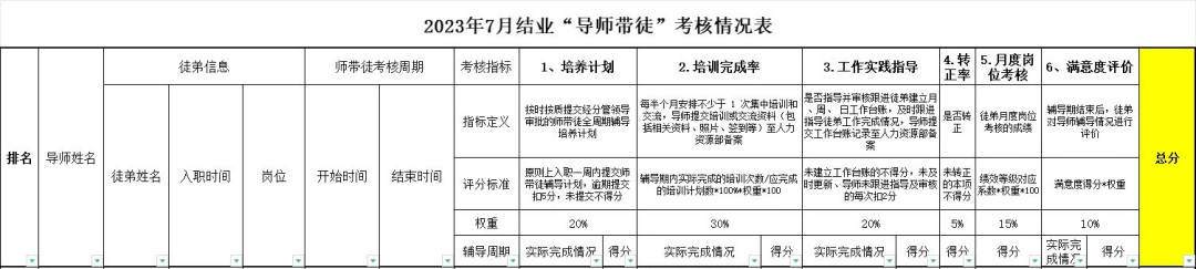 周跟蹤、月考核的導(dǎo)師帶徒機制